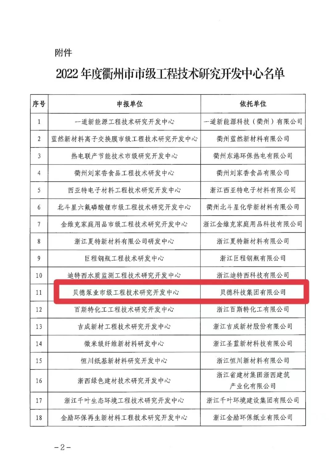 此次獲批市級工程技術(shù)研發(fā)開發(fā)中心,為貝德科技集團(tuán)進(jìn)一步科技創(chuàng)新、高質(zhì)量發(fā)展蓄勢注能,也為貝德泵業(yè)工程技術(shù)研發(fā)中心申請浙江省研發(fā)中心打下基石。