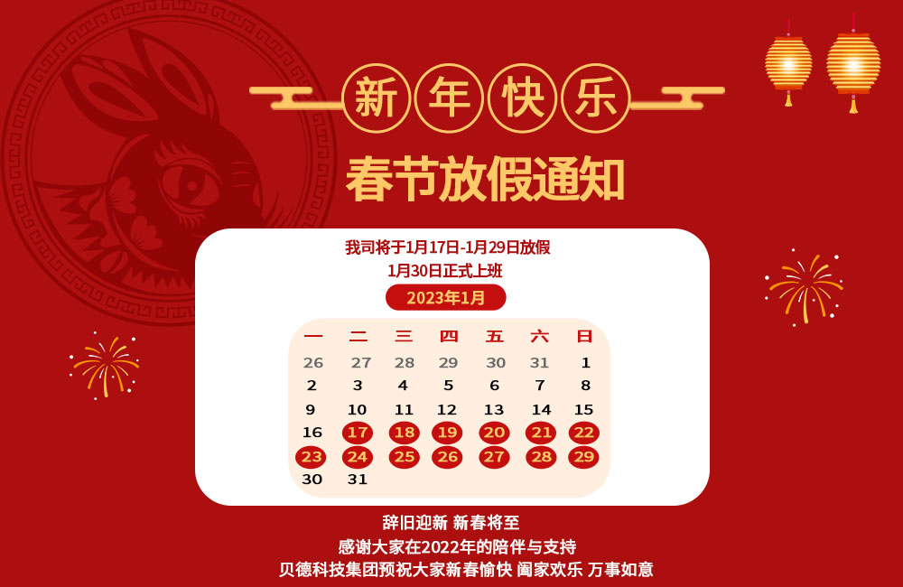2023年春節(jié)將至,貝德科技集團(tuán)有限公司在這里祝大家新年快樂,闔家幸福,萬事如意!