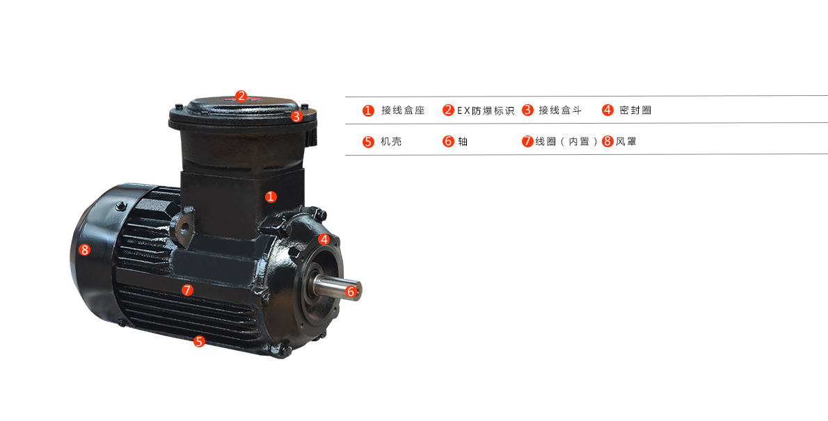 采用垂直水平的平行散熱片結(jié)構(gòu),接線盒在機座頂部,接線盒的進(jìn)線方式為橡套電纜,其接線端子分為三個(供一種電壓)或六個(供兩種電壓)兩種結(jié)構(gòu)。