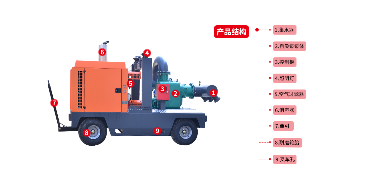 應急搶險救援移動泵車采用一臺柴油發(fā)動機同軸拖動一臺水泵的一體化設備,同時安裝有兩輪或者四輪的實心輪胎以及澳洲標準的牽引裝備,收到險情求助信息后就能快速響應,將泵車連接至汽車上,快速到達受災現(xiàn)場開始排水作業(yè),還能有效解決搶險救災活動中經(jīng)常遇到的進入困難、作業(yè)面狹窄、多種作業(yè)并行等多種難題。