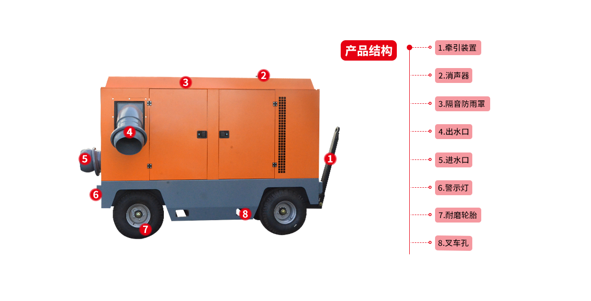 移動防汛搶險泵車具有高吸程和自吸快的特點,不需要引灌水就能自吸啟動和控制運行,配備動力即可作為移動泵站使用。采用真空泵可使主泵正常工作后停止運行,或者保持一直運行。此外,泵的自吸能力超強,大大減少自吸時間,有效提高工作效率,提高吸程30%以上,具有耐久性、穩(wěn)定性、實用性和經(jīng)濟性等多種優(yōu)點。移動防汛搶險泵車大流量混流型移動泵車集混流泵和無堵塞排污于一體,采用柴油機驅(qū)動軸向回流外混式,并通過泵體、葉輪流道的獨特設(shè)計,使用時不需要安裝底閥和灌引水。主要用于農(nóng)田灌溉、農(nóng)村灌溉、農(nóng)業(yè)灌溉、排水泵站、雨水泵泵站、排灌排澇、防洪防汛、防洪排澇、抗旱減災(zāi)等。大流量混流型移動泵車具有很好的自吸性能;而且機動性強,外置拖車裝置,可裝置與汽車尾部進行拖拽;本泵全自動操作無須人員值守,全系標配一鍵啟動。本泵車是防汛抗旱產(chǎn)品的較佳選擇,產(chǎn)品技術(shù)達到國際水平,具有廣泛的應(yīng)用市場和發(fā)展前景。拖車式移動排澇泵車具有效率高、性能范圍廣、運行安全平穩(wěn)、噪音低、壽命長、安裝維修方便等特點。供輸送清水或物理化學性質(zhì)類似于水的其它液體,也可以通過改變泵過流部件材質(zhì)、密封形式和增加冷卻系統(tǒng)用于輸送熱水、油類、腐蝕性或含磨粒的介質(zhì)。