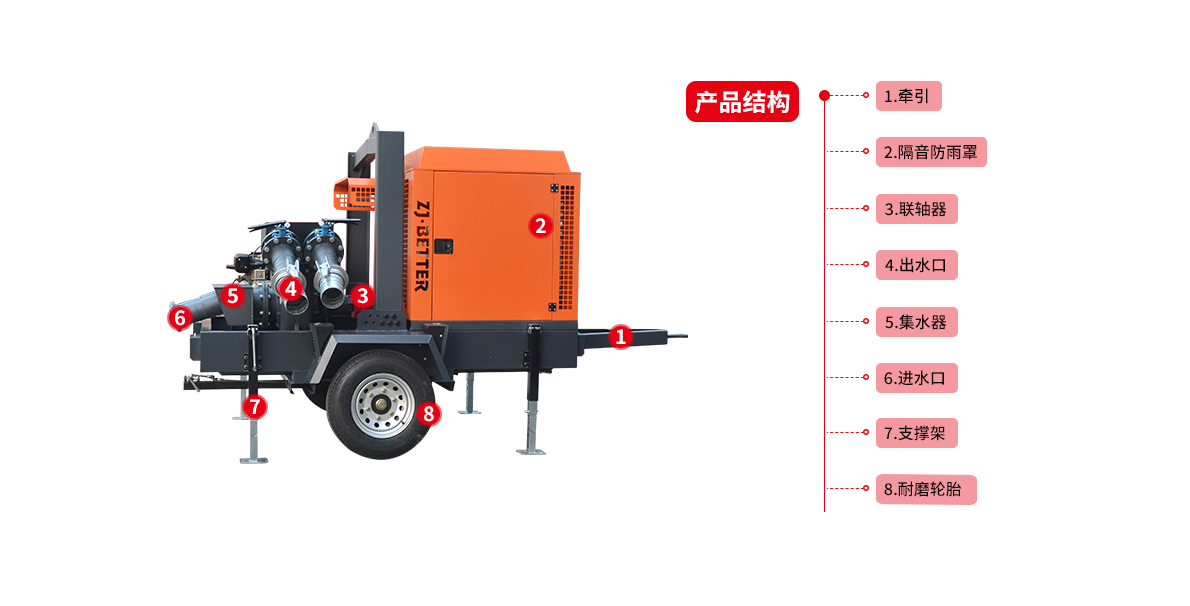 2、自吸時間短,出水流量大,機動性強,能適應各種氣候環(huán)境。